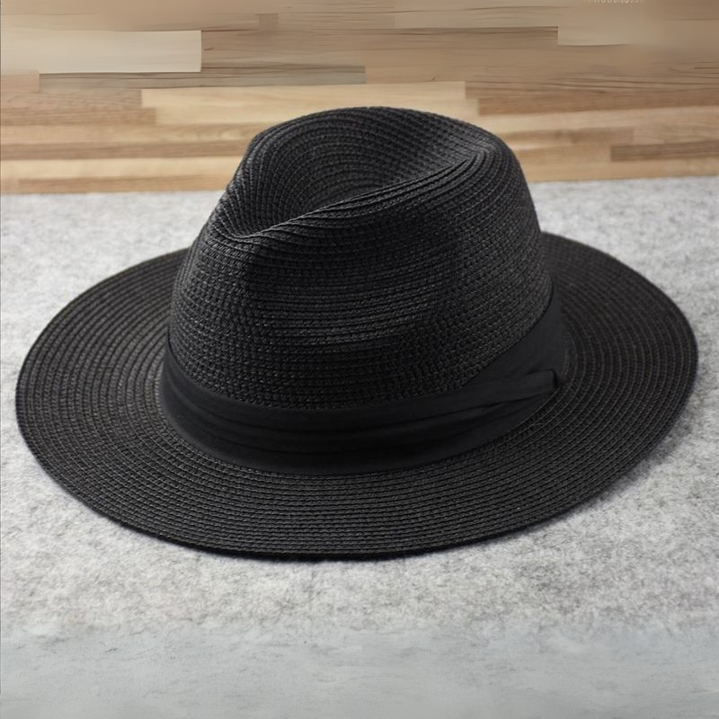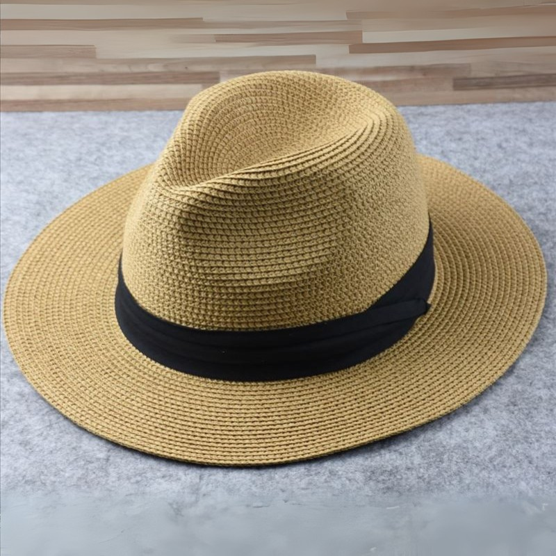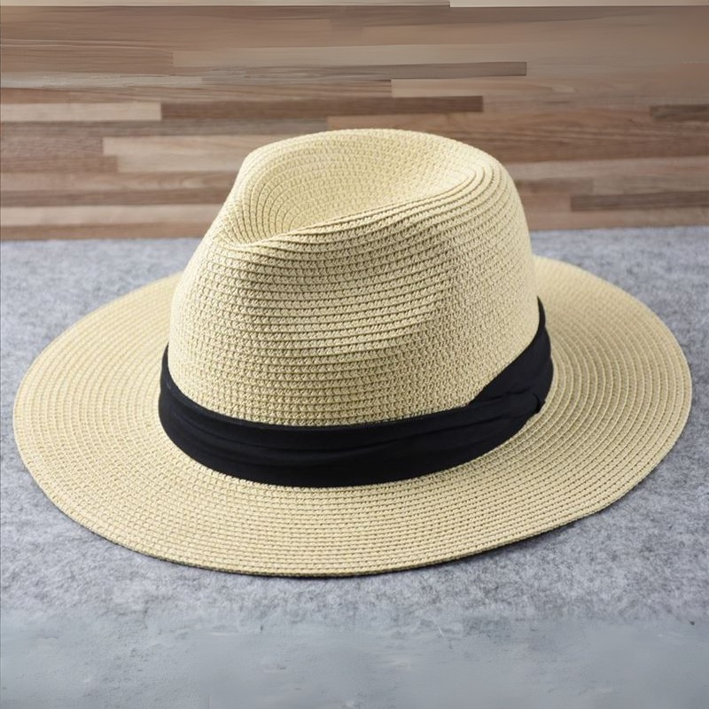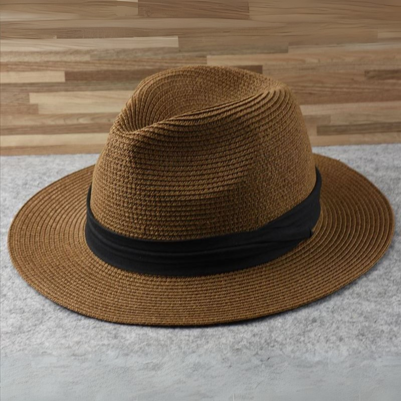 This Panama-style hat for men features a woven surface and structured silhouette, making it a suitable choice for sunny seasons. Its teardrop-shaped crown and medium-wide brim offer practical coverage, while the traditional black band adds a refined contrast. Designed for warmer months, it suits those seeking a structured look with seasonal functionality.