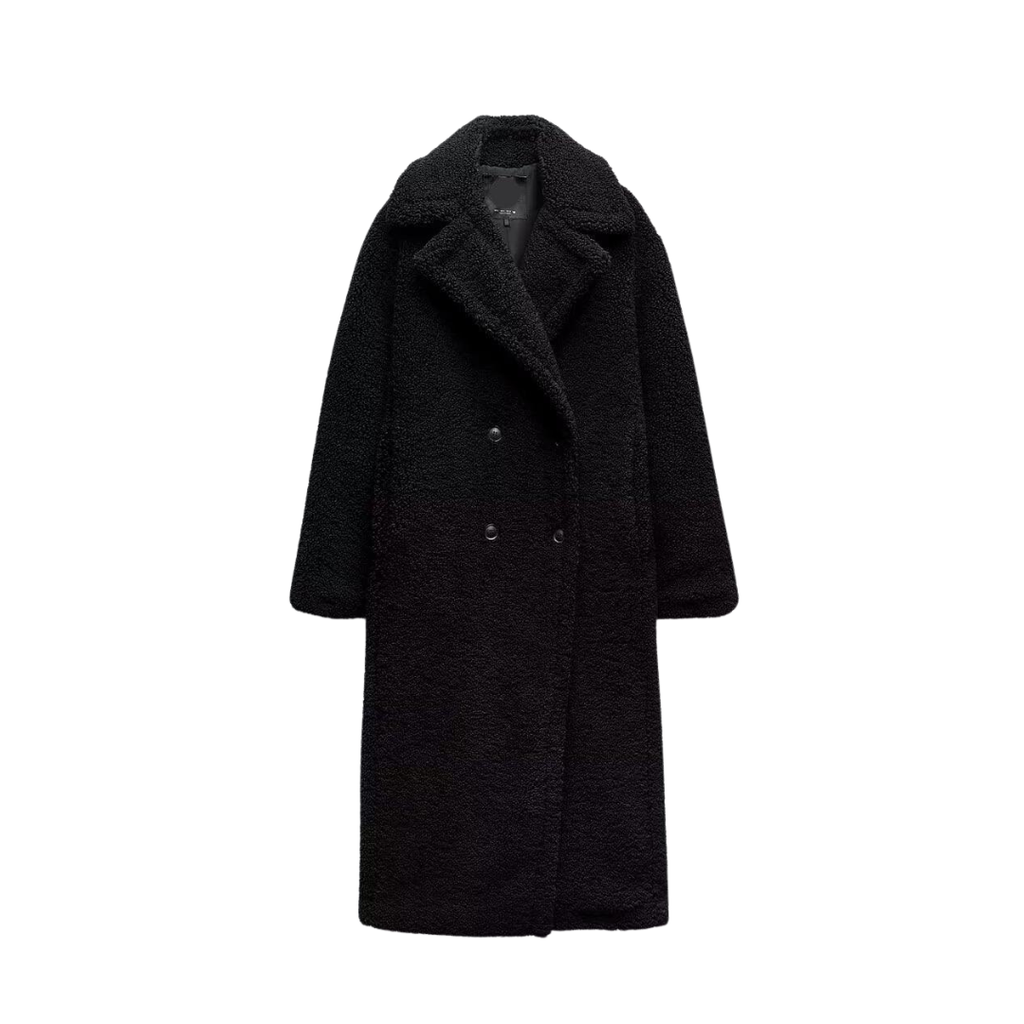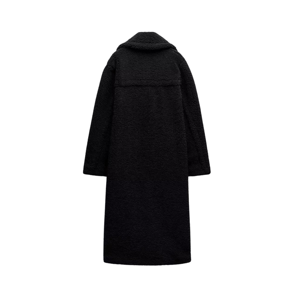 The long teddy coat combines casual simplicity with modern design. It complements winter outfits with structure without being overpowering, making it suitable for both elegant and everyday looks.